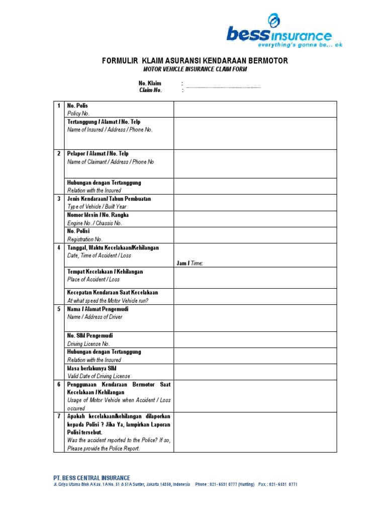 Auto Insurance Claim Form