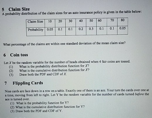 Solved 5 Claim Size A Probability Distribution Of The Cla