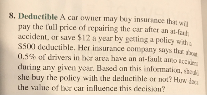 Solved A Car Owner May Buy Insurance That Win Pay The Ful