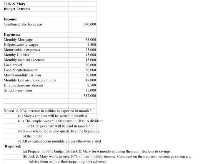 Solved Jack Mary Budget Extracts Income Combined Take