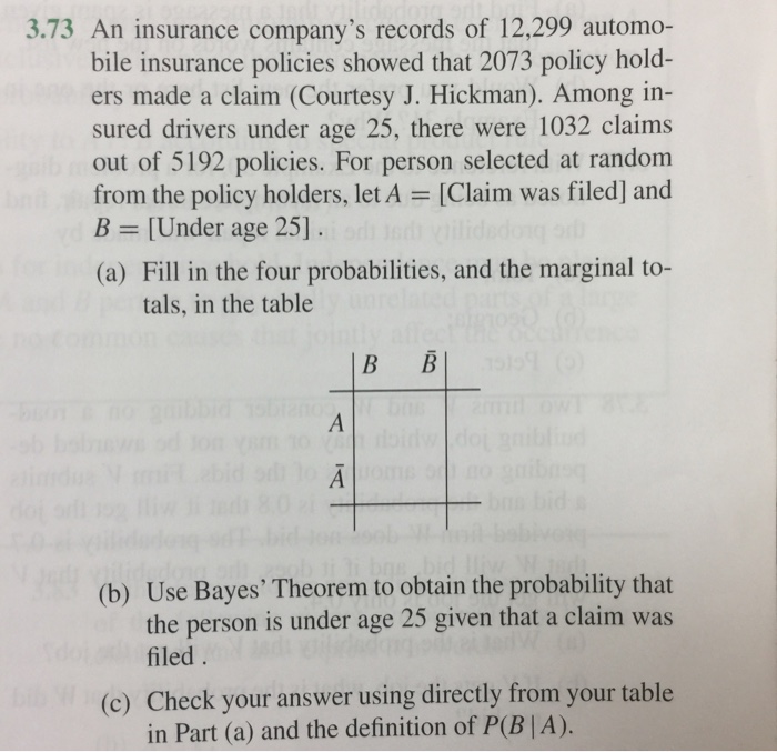 Solved 3 73 An Insurance Company S Records Of 12 299 Auto