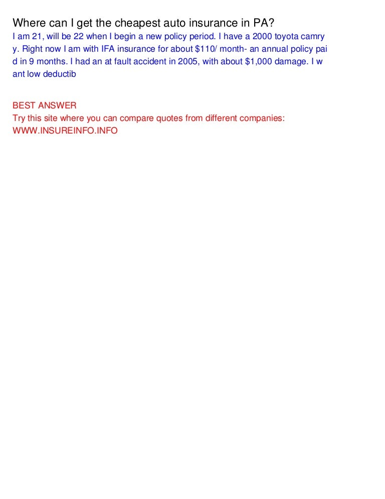 Where Can I Get The Cheapest Auto Insurance In Pa