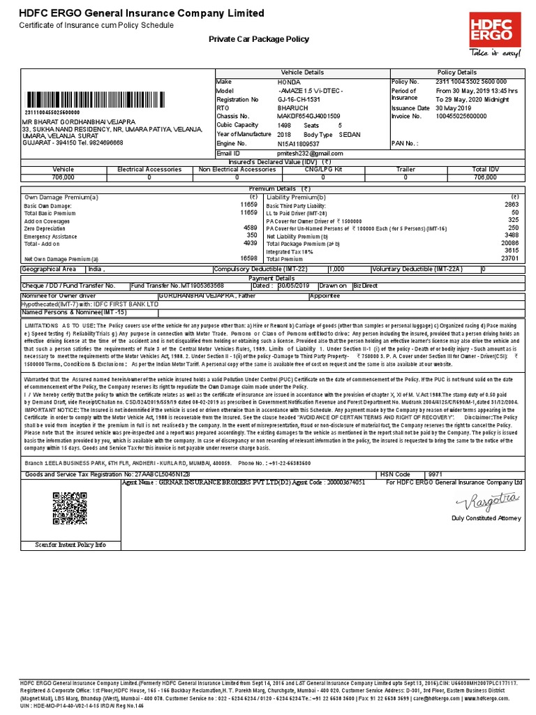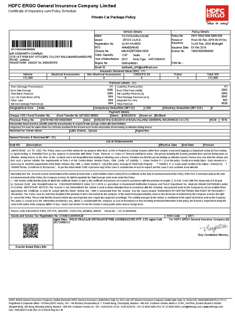 Pdf Hdfc Ergo General Insurance Company Limited 2 Fa Certificate