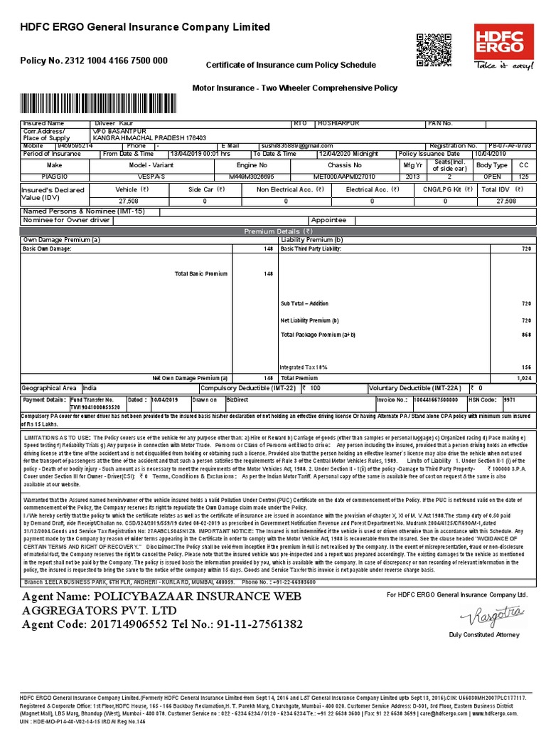 Hdfc Ergo Bike Policy Renewal Namaste India