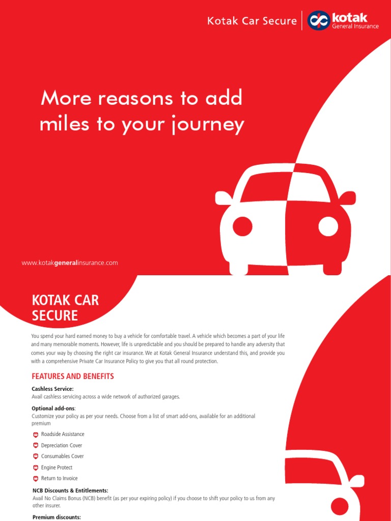 Kotak Car Secure Brochure 16052018 Vehicle Insurance Insurance