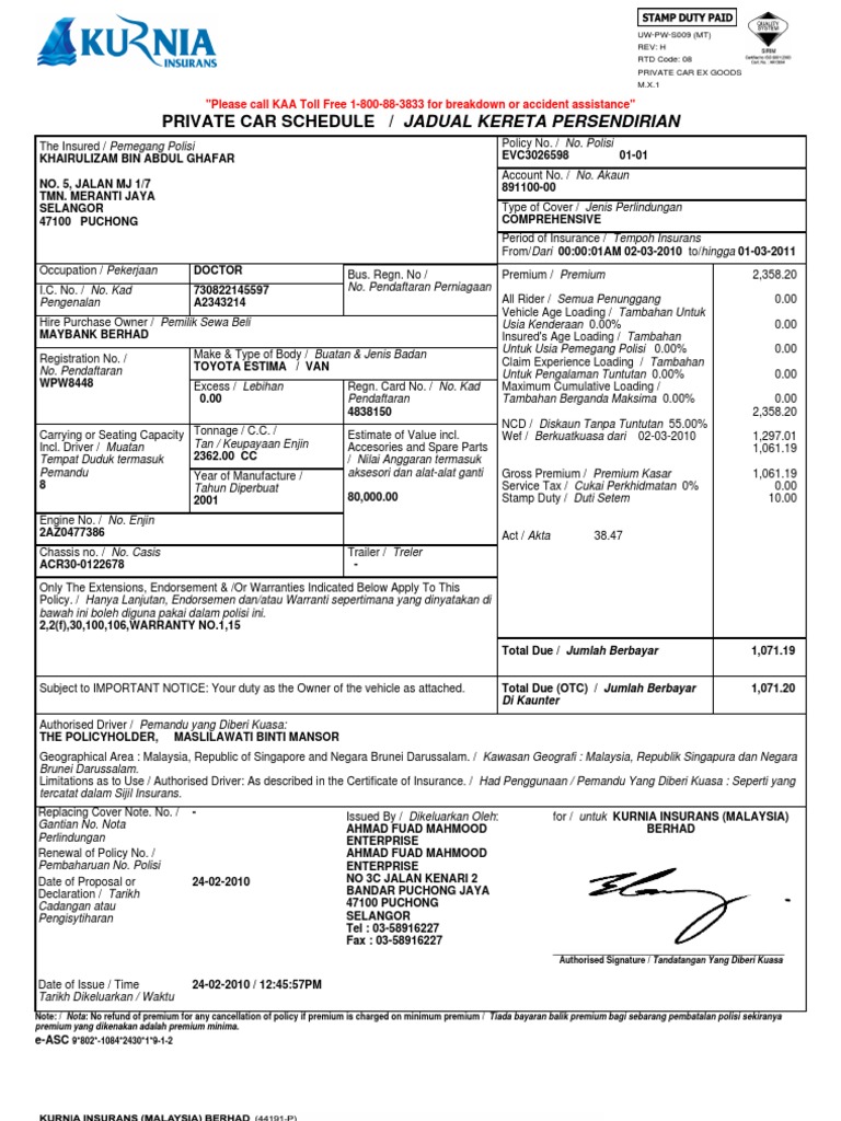 Kurnia Motor Insurance Ampang Acpg Management Sdn Bhd