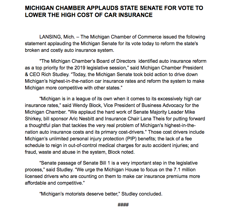 Auto Insurance Reform Passes Michigan Senate Keweenaw Report
