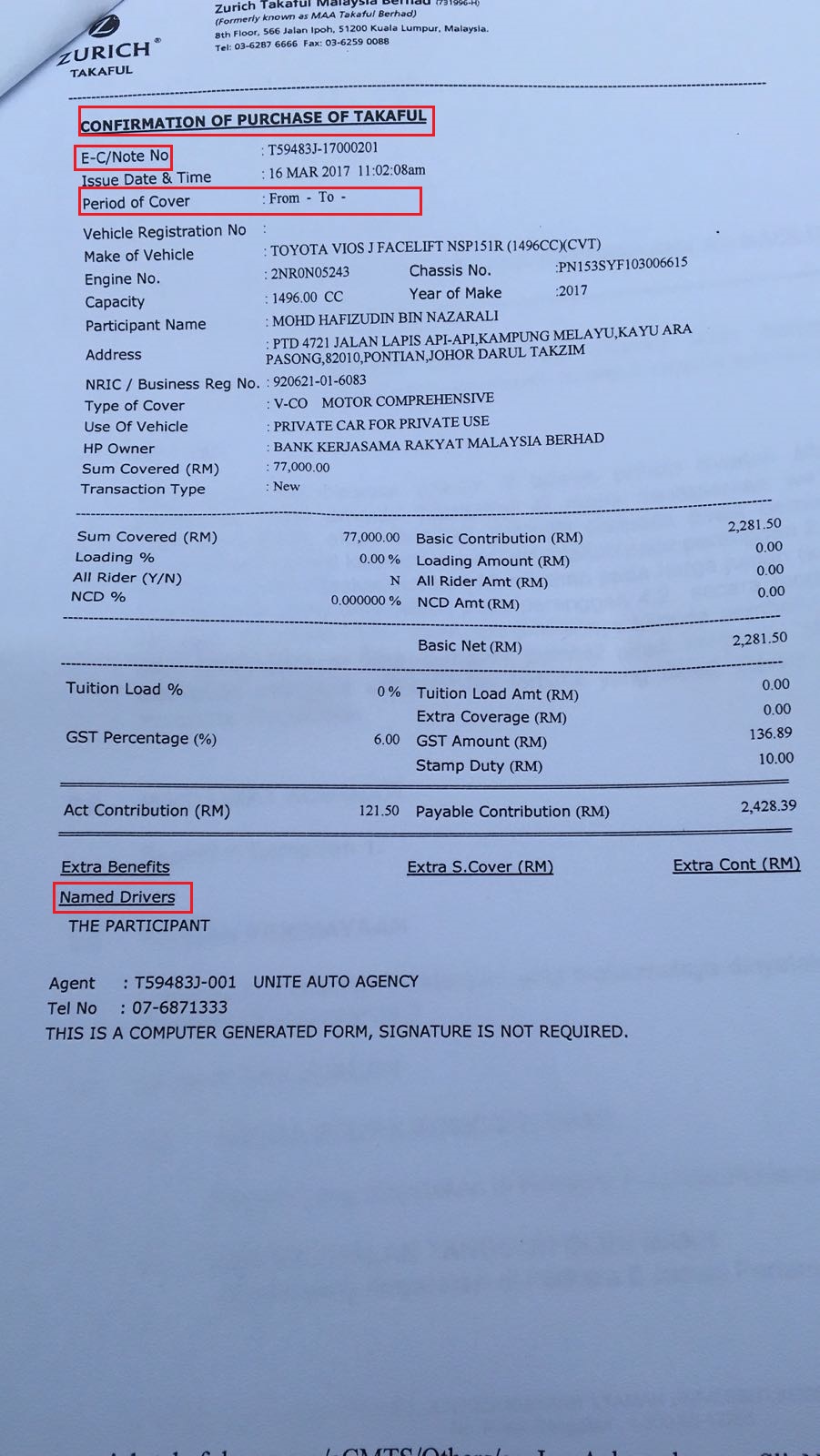 Zurich Car Insurance Policy Number